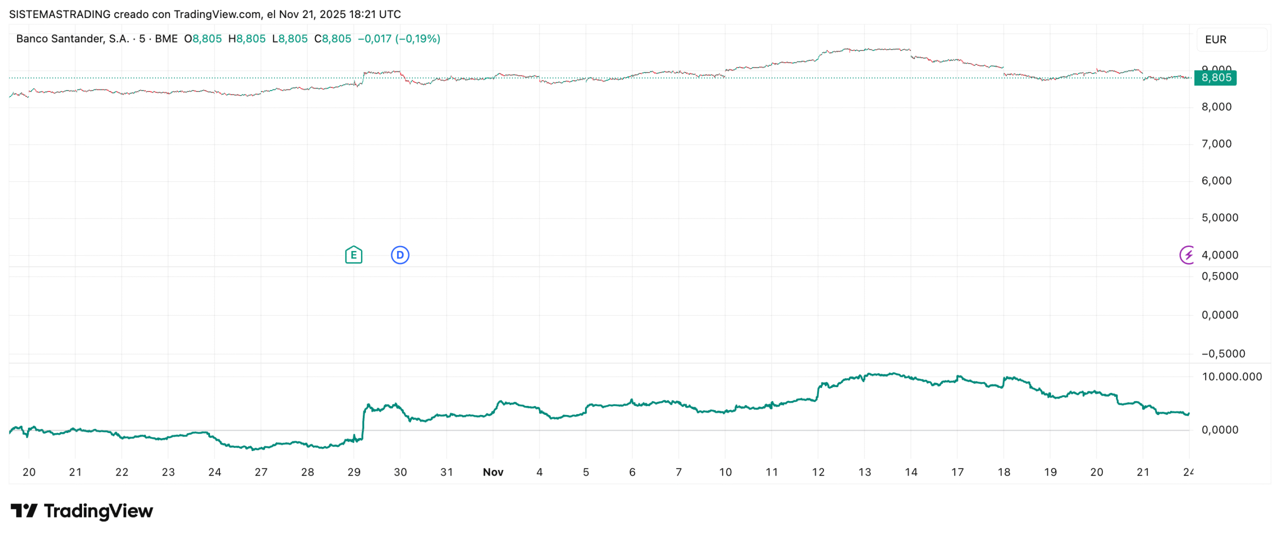 En otras palabras, este indicador ayuda a saber si el volumen está apoyando el movimiento del precio. De hecho, una divergencia entre ambos suele ser una señal de alerta muy poderosa.