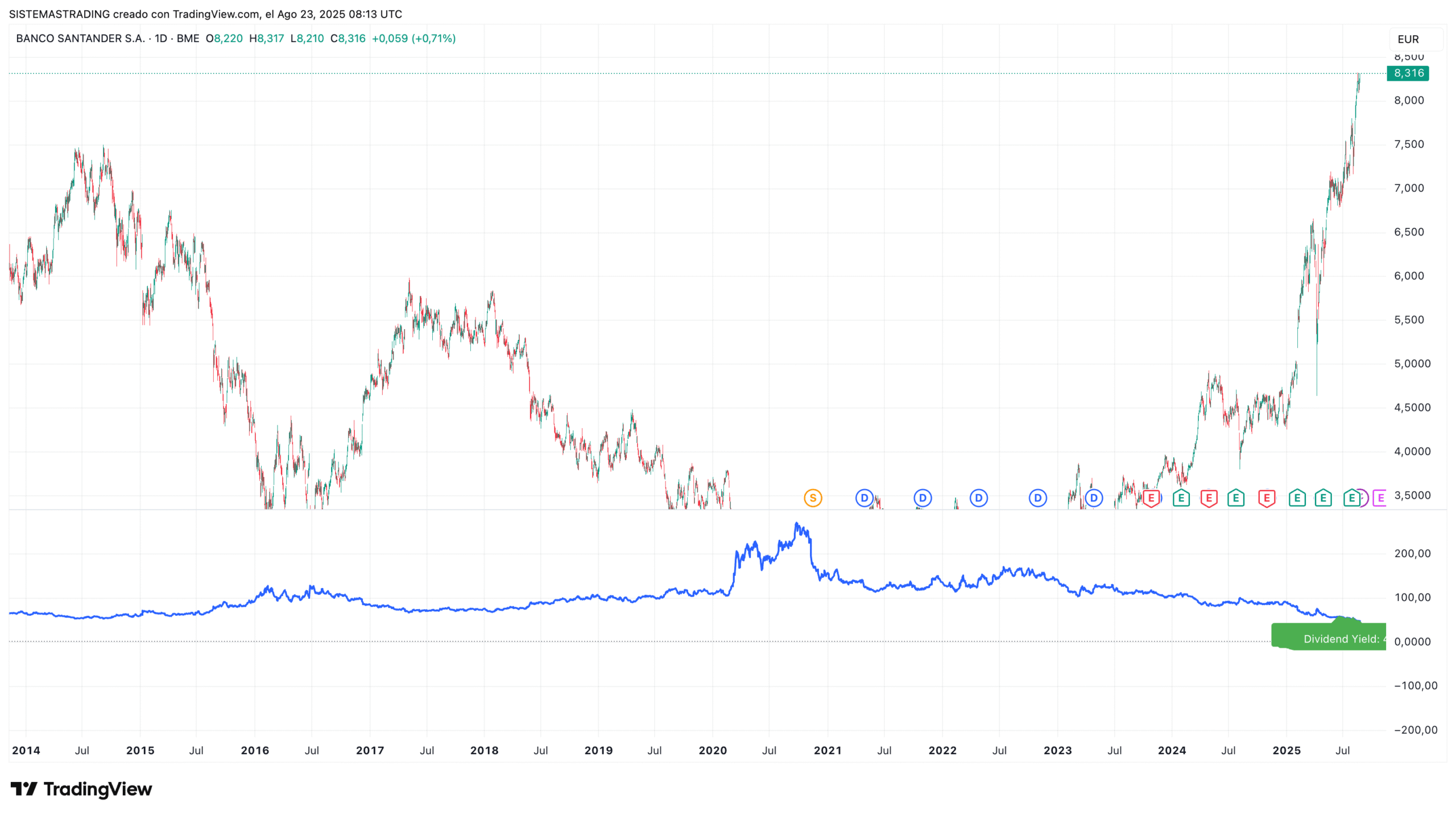 En términos simples, el Dividend Yield es el porcentaje que representa el dividendo anual de una acción en relación con su precio actual. Es decir, te muestra cuánto ganas en dividendos por cada unidad de dinero invertida.